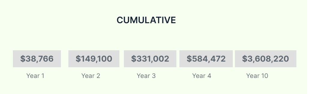 To create financial projections go to our revenue calculator and click “recurring.” Then enter $99.4 for 20% of the Anomaly A.M.P. subscription and enter 1 customer per month (or the number you think you can get). As you enter customers per month for onboarding the financial information appears below as monthly, annually, and cumulative across years if you keep up with the cadence of one customer per month on average. This compounds exponentially.
